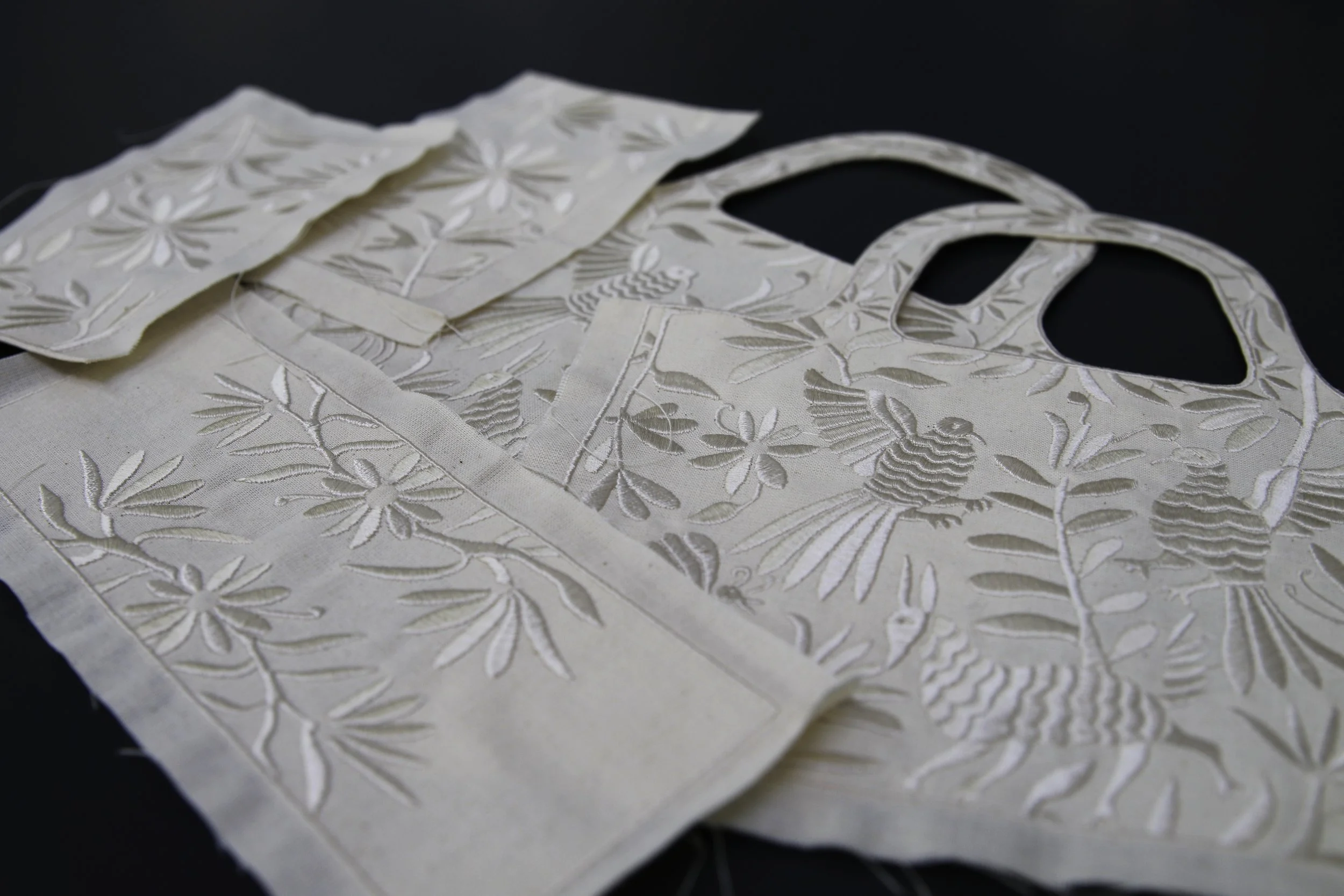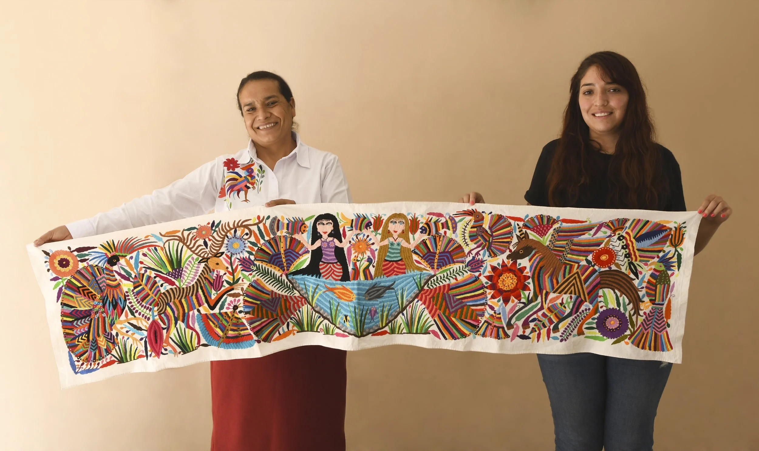 *Tenangos are traditional Mexican indigenous embroidery textiles that depict the flora and fauna of their region of origin as well as picturesque scenes of the way of life of its creators.
